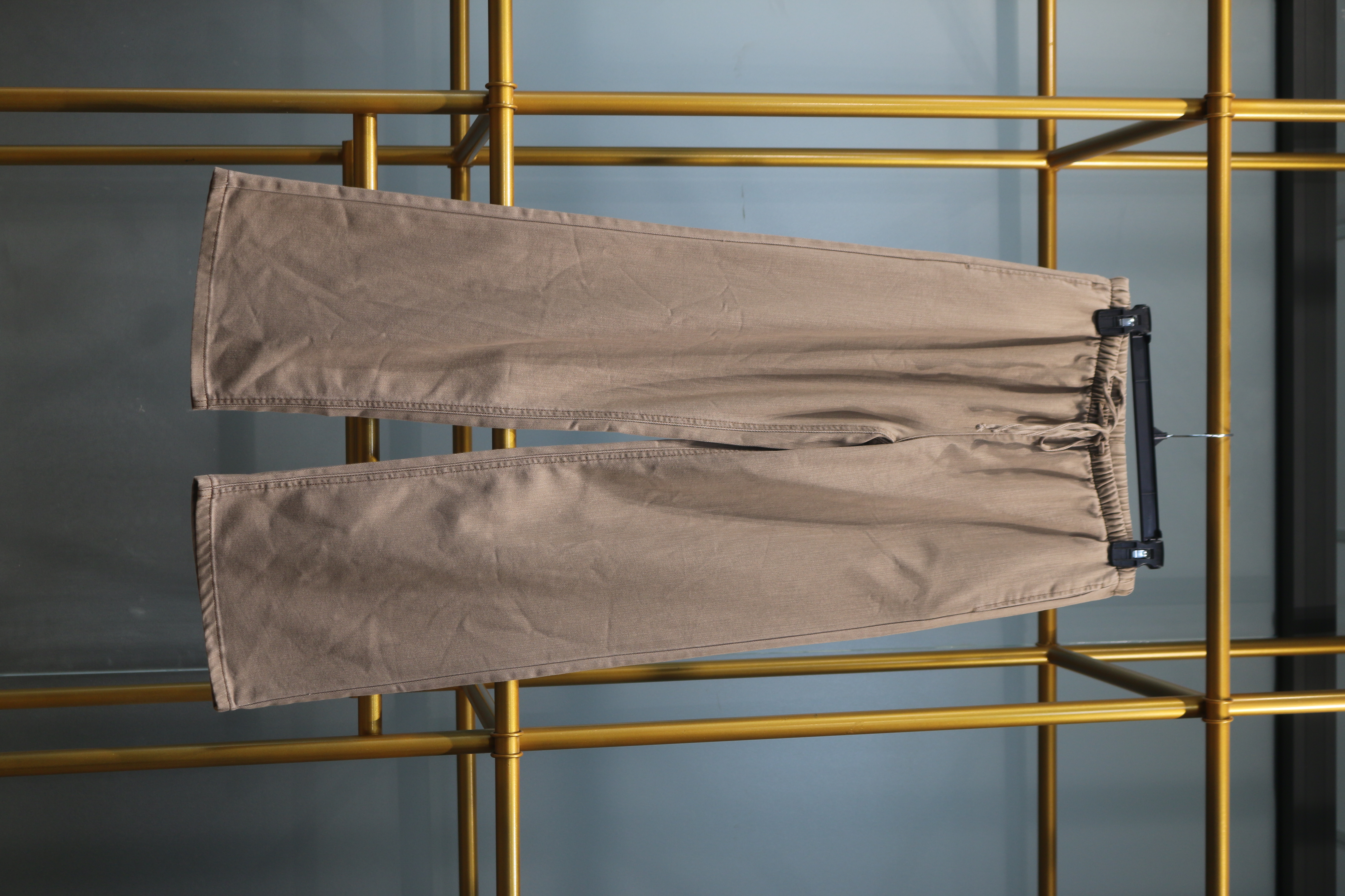 Nếu bạn đang tìm kiếm một item vừa cá tính vừa tiện dụng, thì hai mẫu quần dài này chính là lựa chọn lý tưởng. Với họa tiết camouflage – một biểu tượng của sự mạnh mẽ và phong cách đường phố – cả hai sản phẩm đều được trưng bày trên nền khung kim loại vàng sang trọng, nổi bật giữa phông nền xám hiện đại.